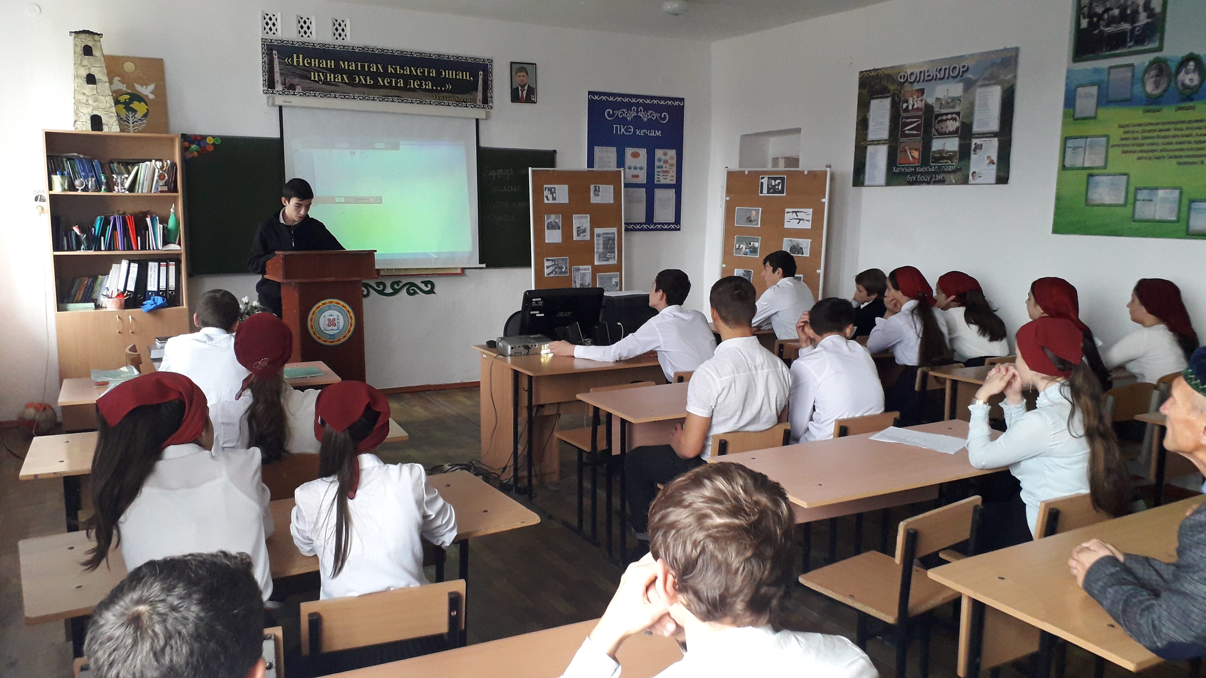 9 ноября для учащихся 8 класса школьный библиотекарь Бацарова Я.Х. провела час истории «Мастер-оружейник». Яха Хожаевна рассказала учащимся о жизни и деятельности легендарного конструктора оружейника XX-XXI века Михаила Тимофеевича Калашникова. Учащиеся с интересом послушали биографию заслуженного героя, посмотрели презентацию «Калашников и его детище». Провела обзор литературы о Калашникове.