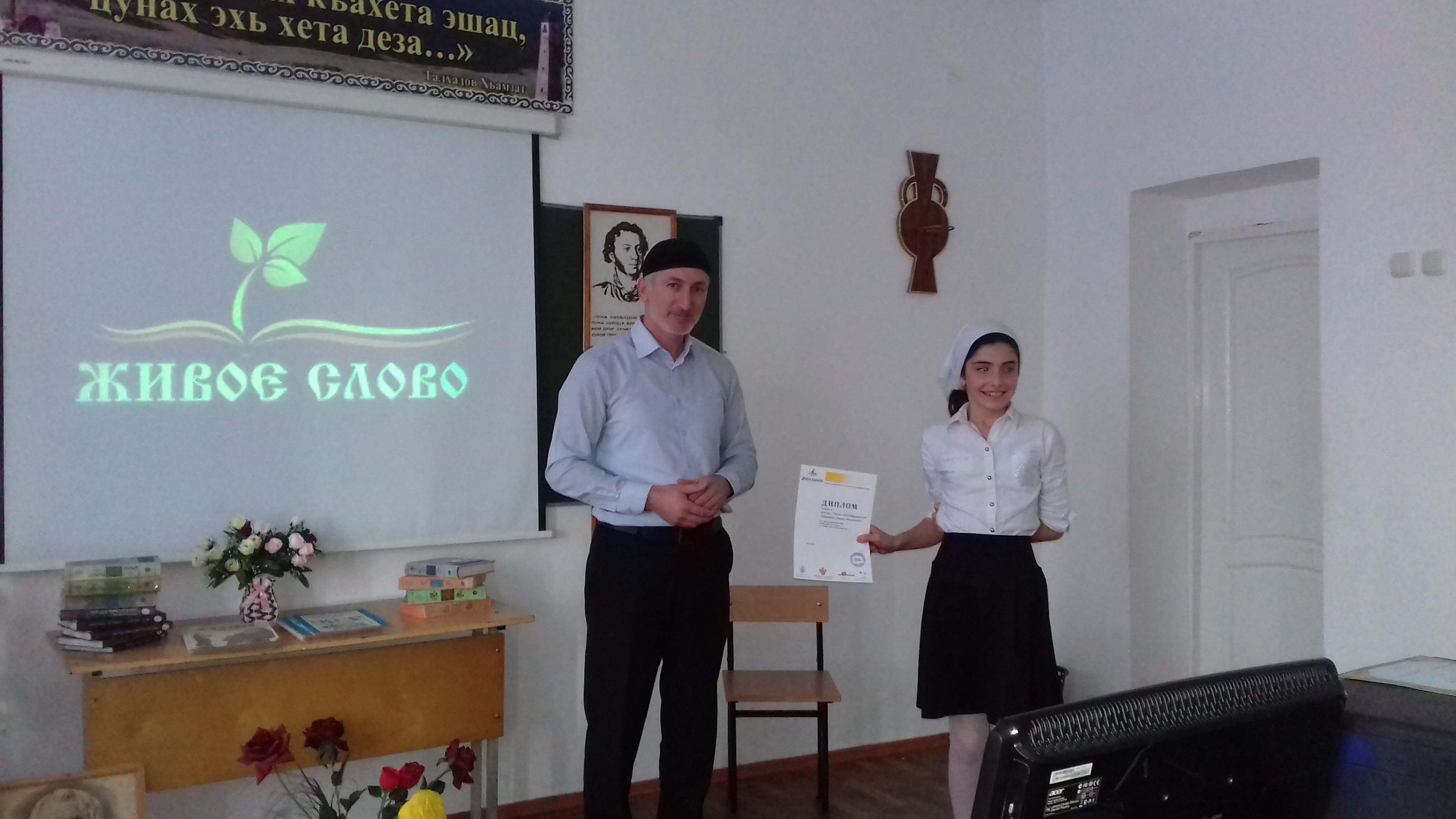 По решению жюри, победителем конкурса юных чтецов «Живая классика» стала Акбердиева Макка , учащаяся 6 "а" класса.Победителю был вручен Диплом. Все участники получили грамоты за участие в Всероссийском конкурсе по чтению вслух «Живая классика».