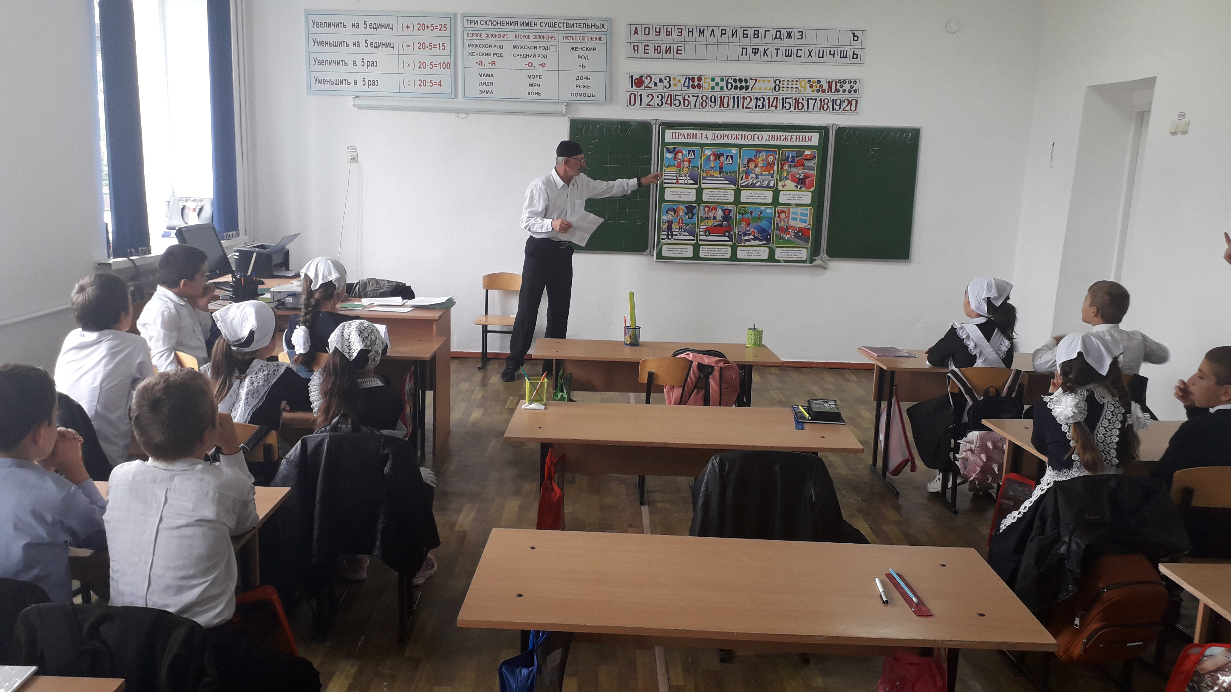 Особое внимание было уделено беседе с ответственным за перевозку детей (Закаев Ю.И.), о выполнении правил безопасности при перевозках детей, в том числе обязательном применении ремней безопасности и особенностях поведения детей на автобусных остановках и при переходе дороги. В каждом из классов оформлен уголок по ПДД. Все мероприятия прошли на хорошем уровне, поставленные цели достигнуты, задачи выполнены.