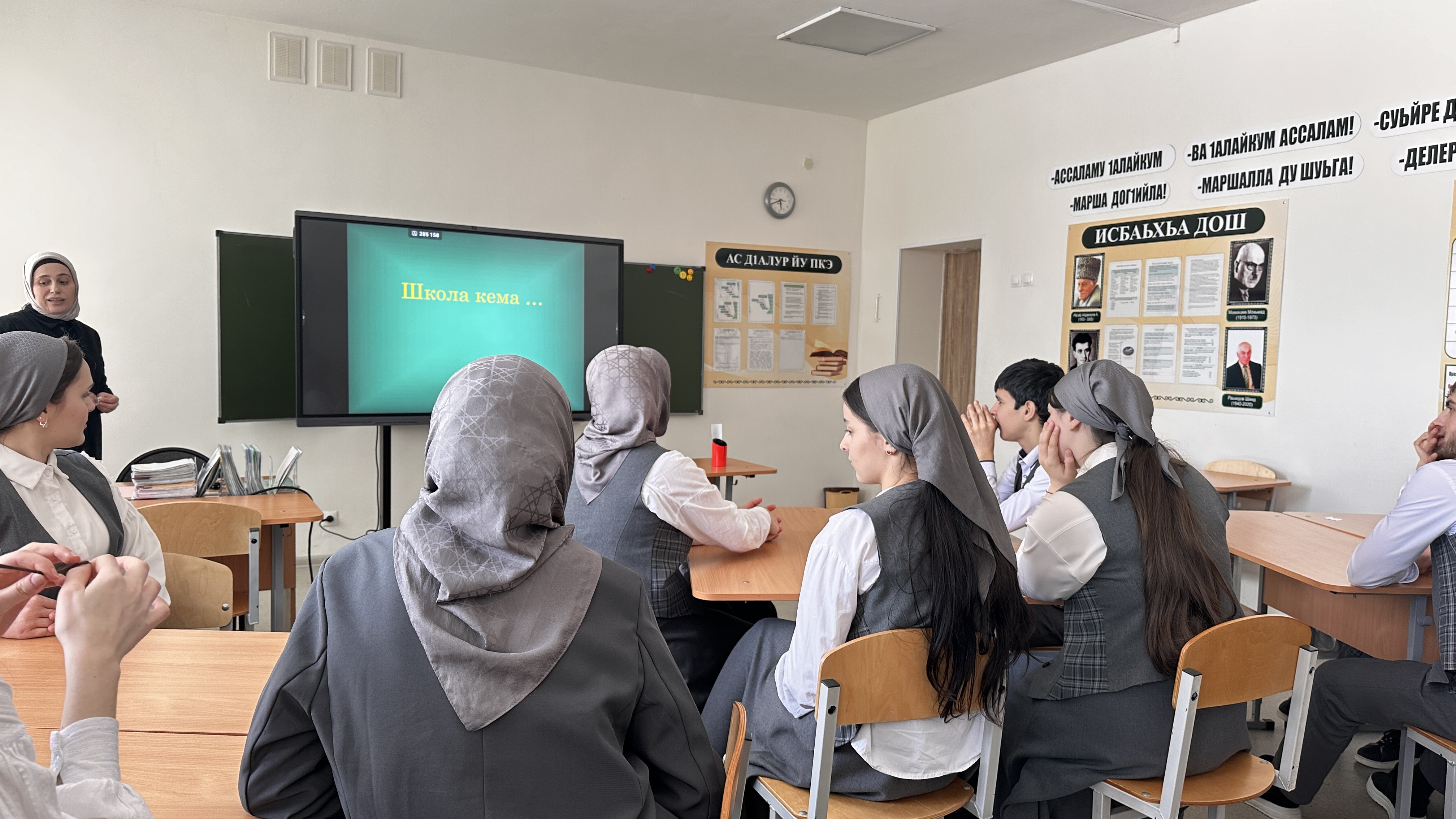 В рамках недели чеченского языка среди учащихся 9-11 классов была проведена интеллектуальная игра «Что? Где? Когда?». Мероприятие, направленное на популяризацию и сохранение родного языка, собрало эрудированных старшеклассников, готовых продемонстрировать свои знания в области чеченской истории, литературы, культуры и традиций.