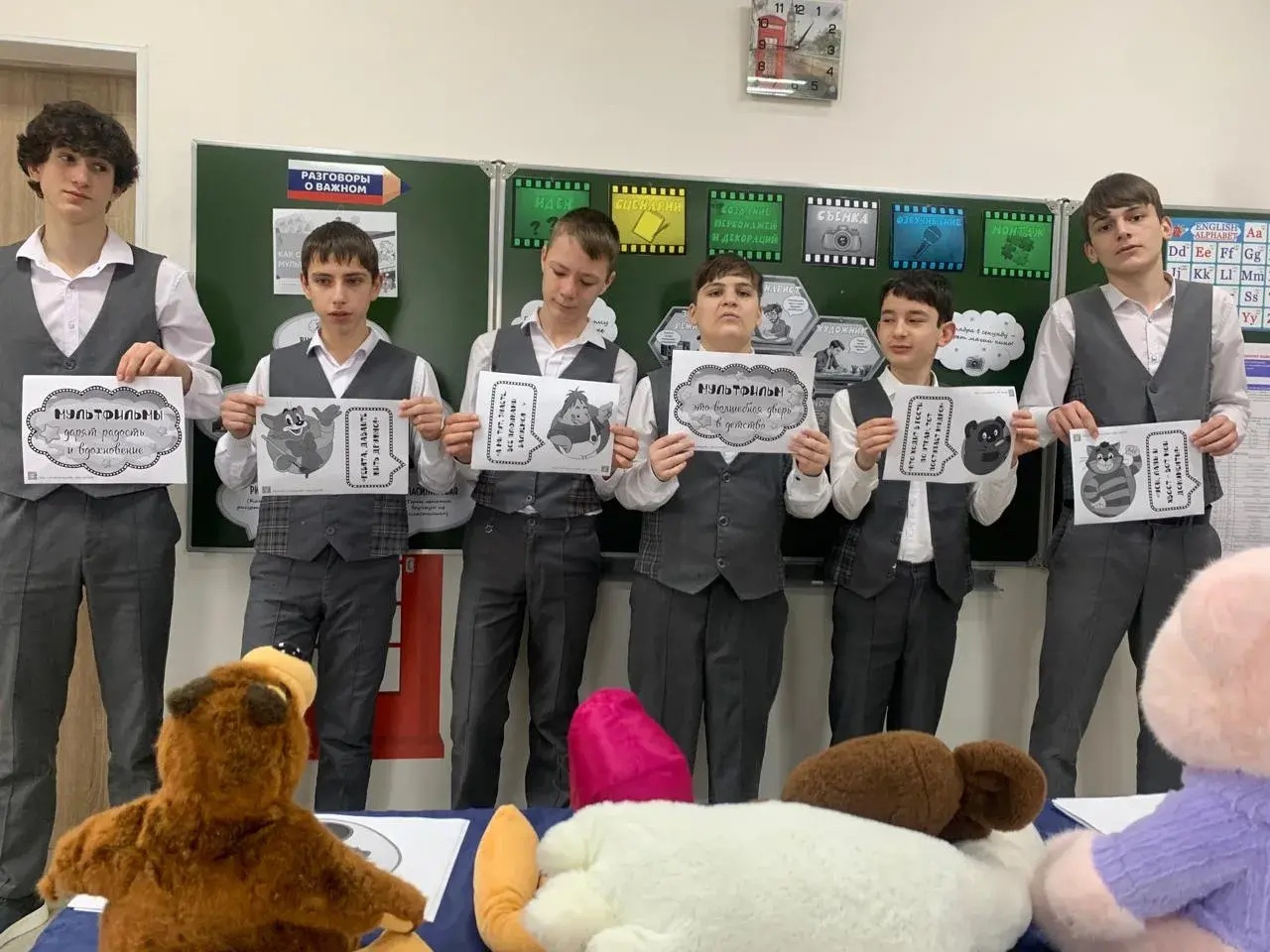 📌После гимна классы разошлись по кабинетам, где их ждали внеурочные занятия «Разговоры о важном» . В этот понедельник ребята знакомились с историей создания мультфильмов.