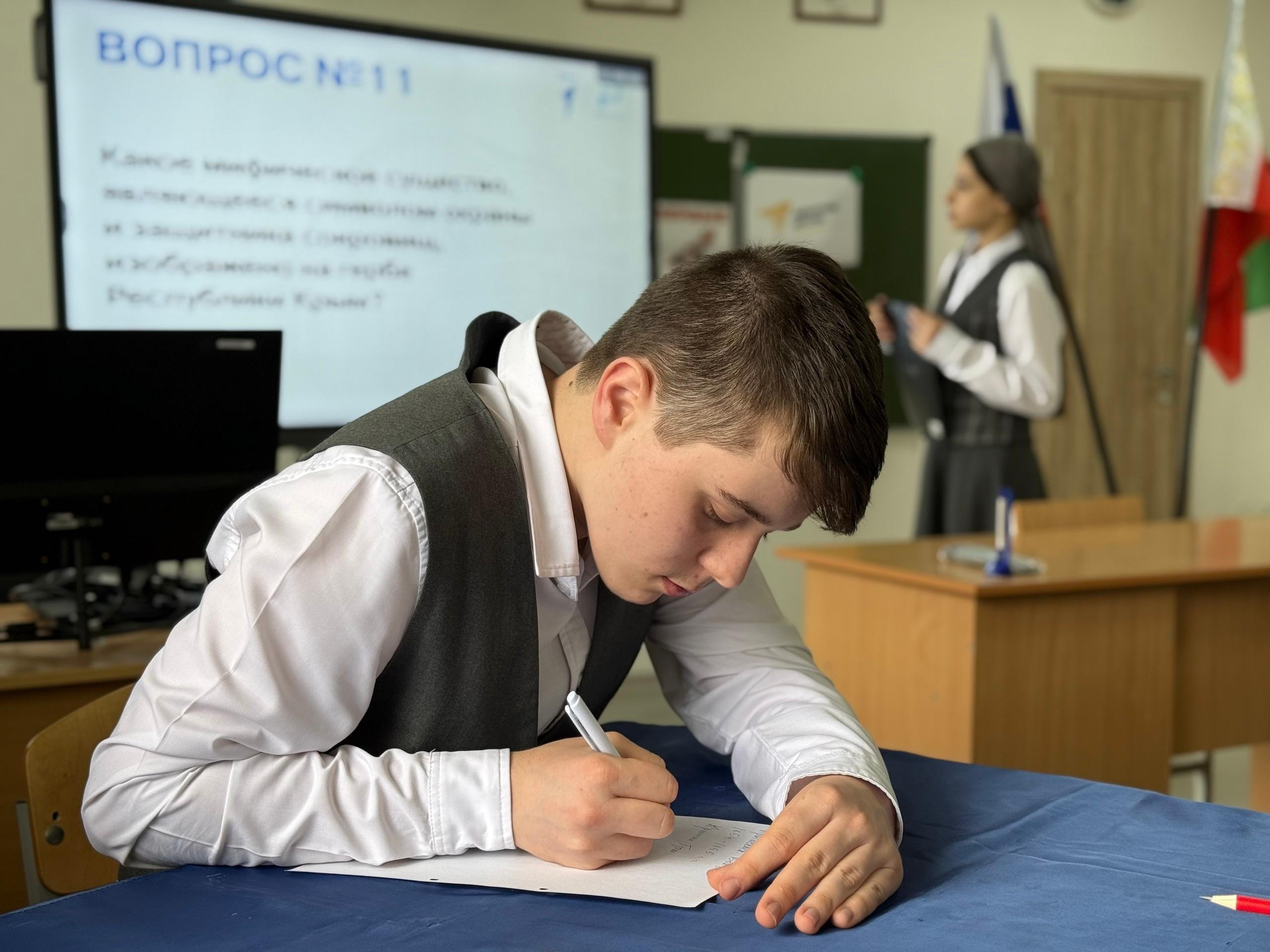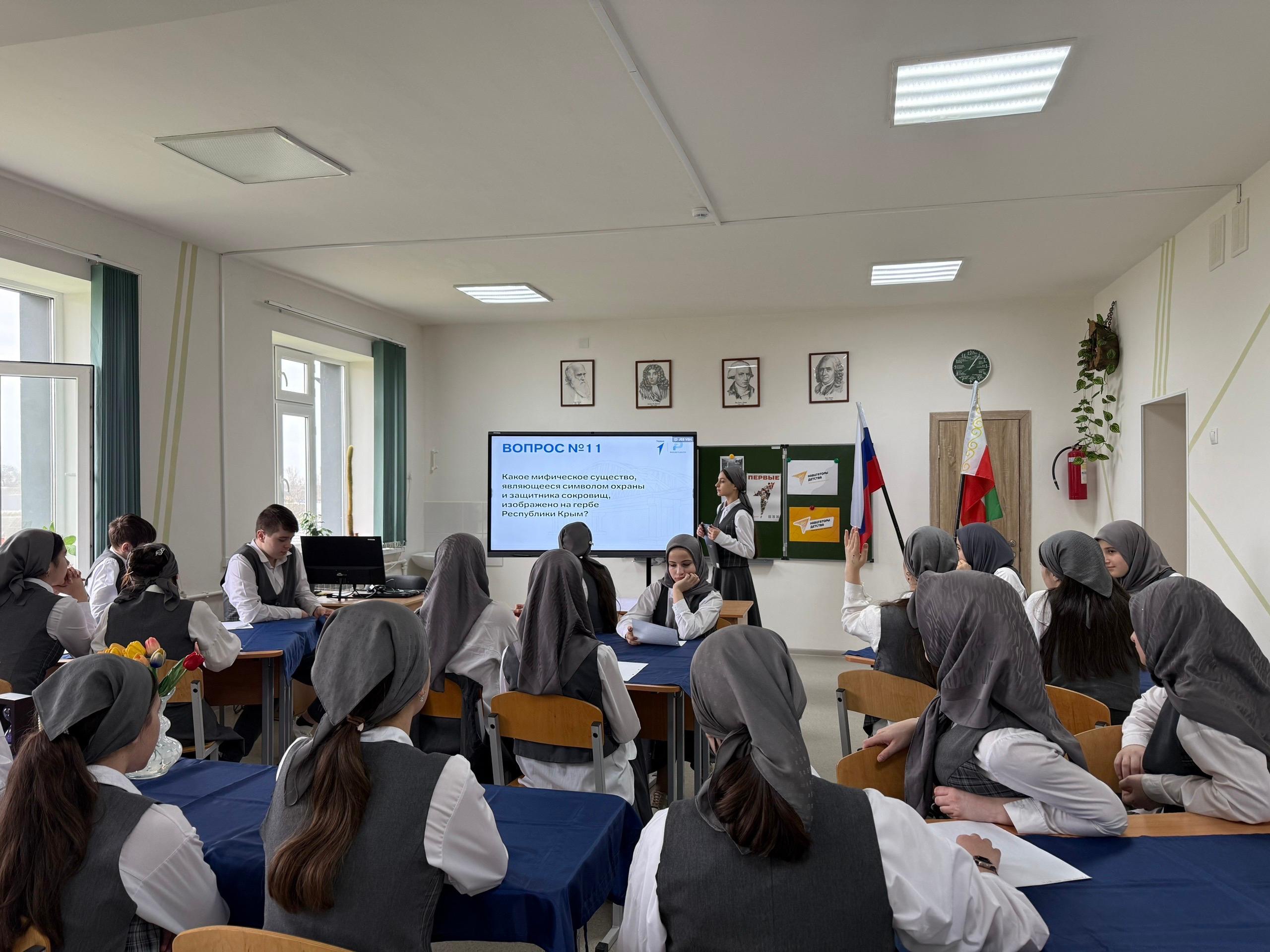Учащиеся нашей школы вместе с активистами «Движения Первых» приняли участие в захватывающей викторине по истории Крыма. Викторина состояла из 15 интересных вопросов, охватывающих широкий спектр исторических сведений — от широко известных фактов до более сложных моментов, требующих глубокого понимания предмета. Это мероприятие стало отличным способом проверить знания учащихся и расширить их представления о богатой истории полуострова.