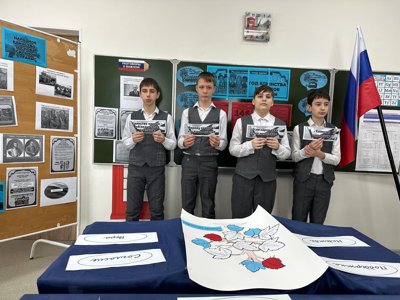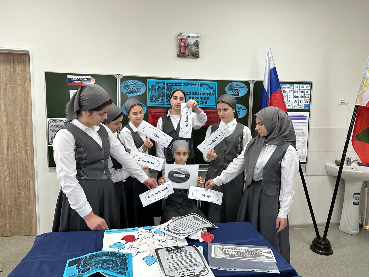 В рамках года Единство народов России классный руководитель 8" а" класса Муслима Елизавета Лемовна провела классный час на тему: " Многонациональная Россия".В современном мире Россия является многонациональной страной, где живут люди различных национальностей, культур и традиций. Для формирования толерантного и уважительного отношения к разнообразию и различиям. проведение классного часа "Многонациональная Россия" является важной задачей. Муслиевп рассказала учащимся о вкладе различных национальностей в культурное, научное, экономическое и социальное развитие страны. На классном часе учащиемя отгадывали загадки , распознавания национальные символы. Классный час поможет учащимся понять принципы толерантности, уважения и взаимопонимания, а также расширить их кругозор о разнообразии культур в стране.